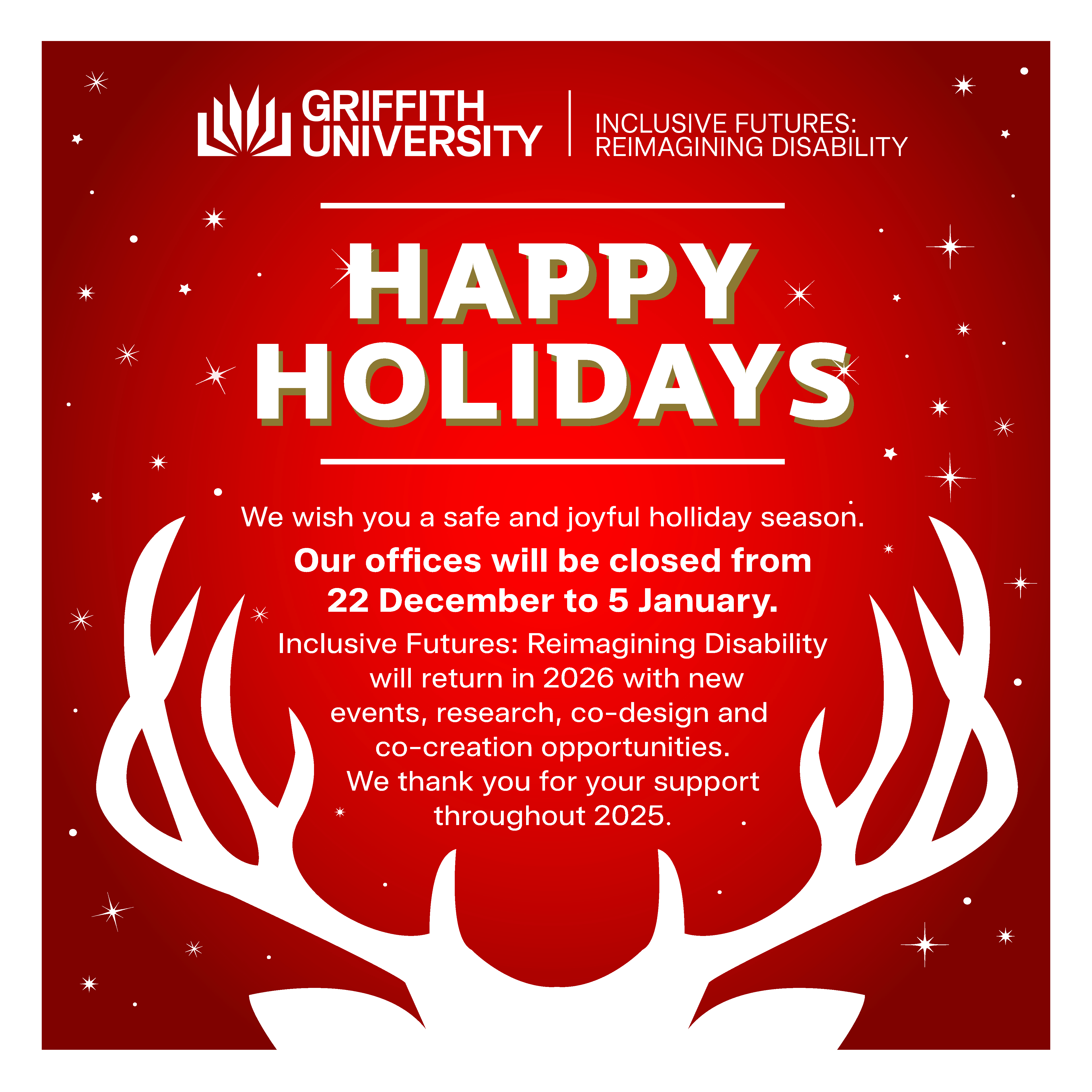 Wishing you a joyful and safe New Year! Please note our offices will be closed from Monday, 22 December 2025, to Monday, 5 January 2026. Inclusive Futures: Reimagining Disability will return in 2026 with more inclusive events, groundbreaking research, and meaningful opportunities for co-design and co-creation.